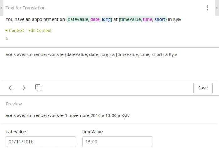 We did our best to come up with ICU syntax support and are really happy to share this amazing thing with our users! Select, Plural, Number, Date and Time formats are on hand to test and smooth away any issue one could have before.